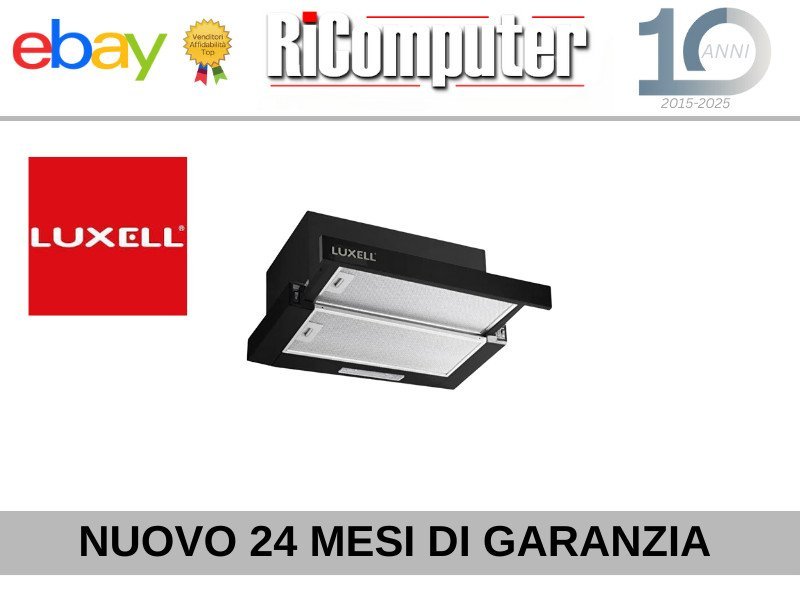 Cappa Cucina Aspirante Luxell DS6-905A. Larghezza 60cm, Finitura Vetro Nero Design Moderno. Motore 3 Velocità, Illuminazione LED, Filtri Alluminio Lavabili. Prodotto NUOVO con Garanzia 24 Mesi. Spedizione Rapida Gratuita. Arredo Cucina Moderno.